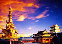 乐山金顶,金顶为峨眉山次高峰,海拔3077米。顶上是个小平原,原有铜殿一座,在太阳的照射下,光彩夺目,故而得名金顶。登上金顶,人们顿觉万象排空,气势磅礴。极目四望,成都平原尽收眼底。 >> 详细介绍
